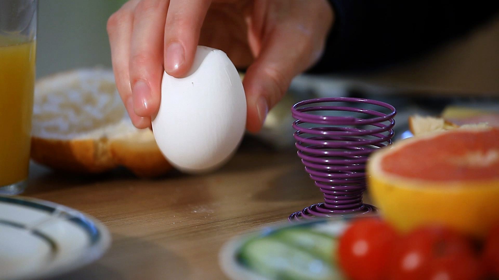 Das Frühstücksei oben und unten anklopfen, dann das spitze Ende des Eis an den Mund setzen und kräftig pusten – fertig geschält. Zeitersparnis: 30 Sekunden.